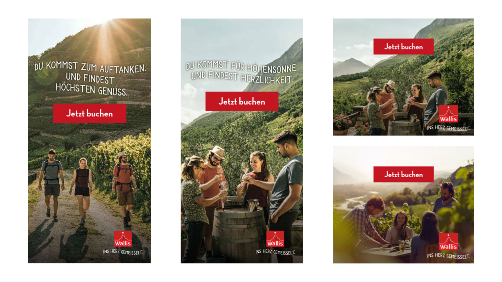 Um die potenzielle Kundschaft zu einer Buchung auf wallis.ch zu motivieren und damit Umsatz zu generieren, muss zuerst die Lust auf eine Reise ins Wallis geweckt werden. Entsprechend dieser Logik ist es wichtig, die Gäste während des gesamten Kundschaftserlebnisses zu begleiten – von der Inspirationsphase bis zur tatsächlichen Buchung. So enthalten alle Kommunikationsaktivitäten einen «Call-to-Action», der die Kundinnen und Kunden auf wallis.ch führt, wo sie weitere Informationen finden oder Angebote direkt buchen können.