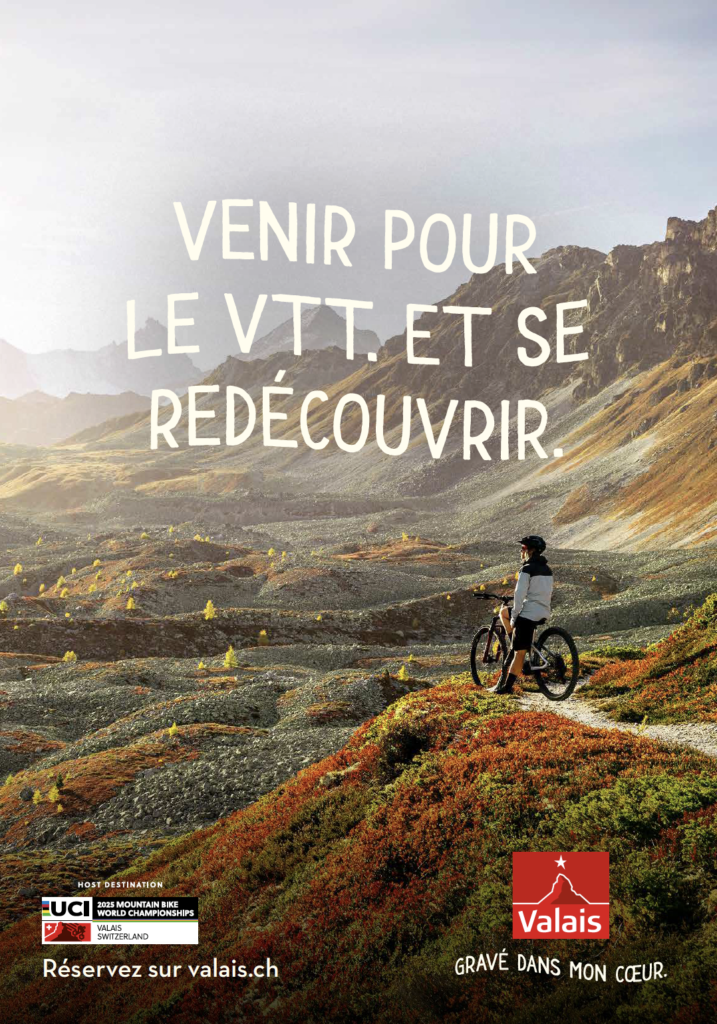 Le Valais vibrera au rythme du VTT en accueillant les Championnats du Monde de Mountain Bike UCI 2025. L’organisation d’un tel événement d’envergure internationale est une opportunité unique pour le Valais de se positionner comme destination vélo/VTT de référence et de promouvoir la pratique de ces deux activités auprès de la population. L’occasion aussi pour Valais/Walis Promotion de continuer à renforcer sa communication autour de la thématique stratégique du VTT.